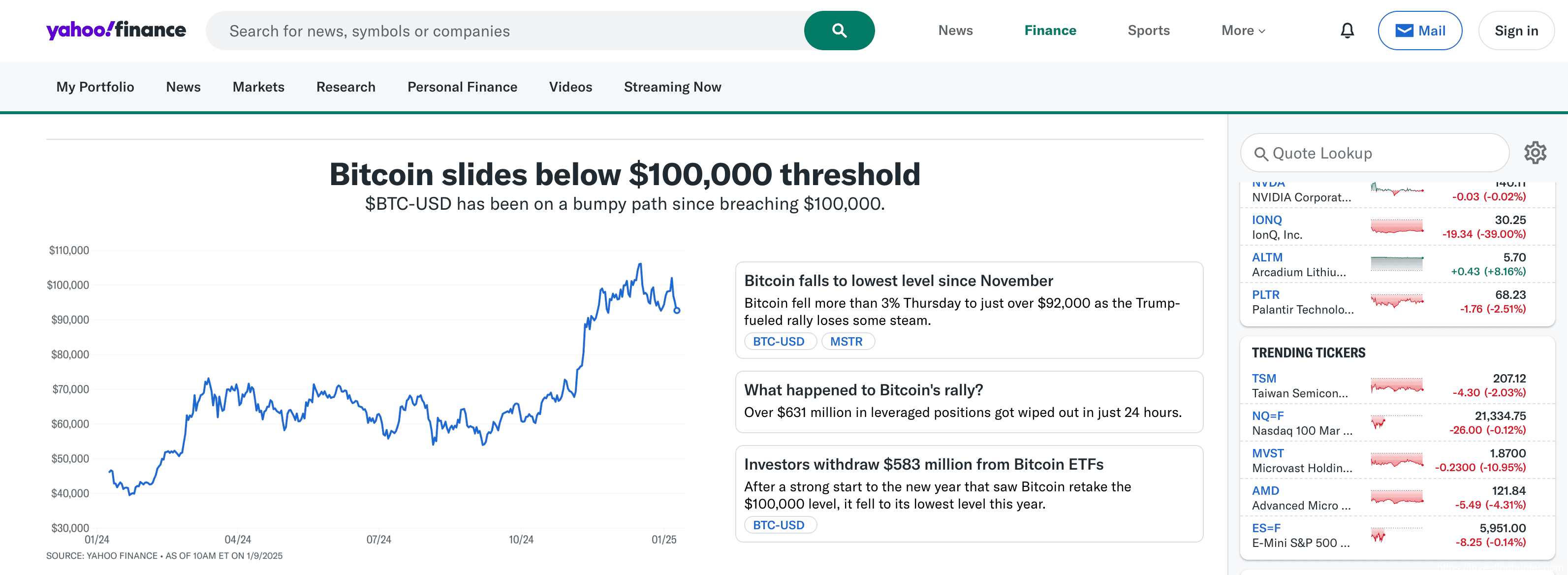 - Cryptocurrency Data: Since 2017, Yahoo Finance has included cryptocurrency data, covering over 9,000 cryptocurrencies, including Bitcoin and Ethereum.